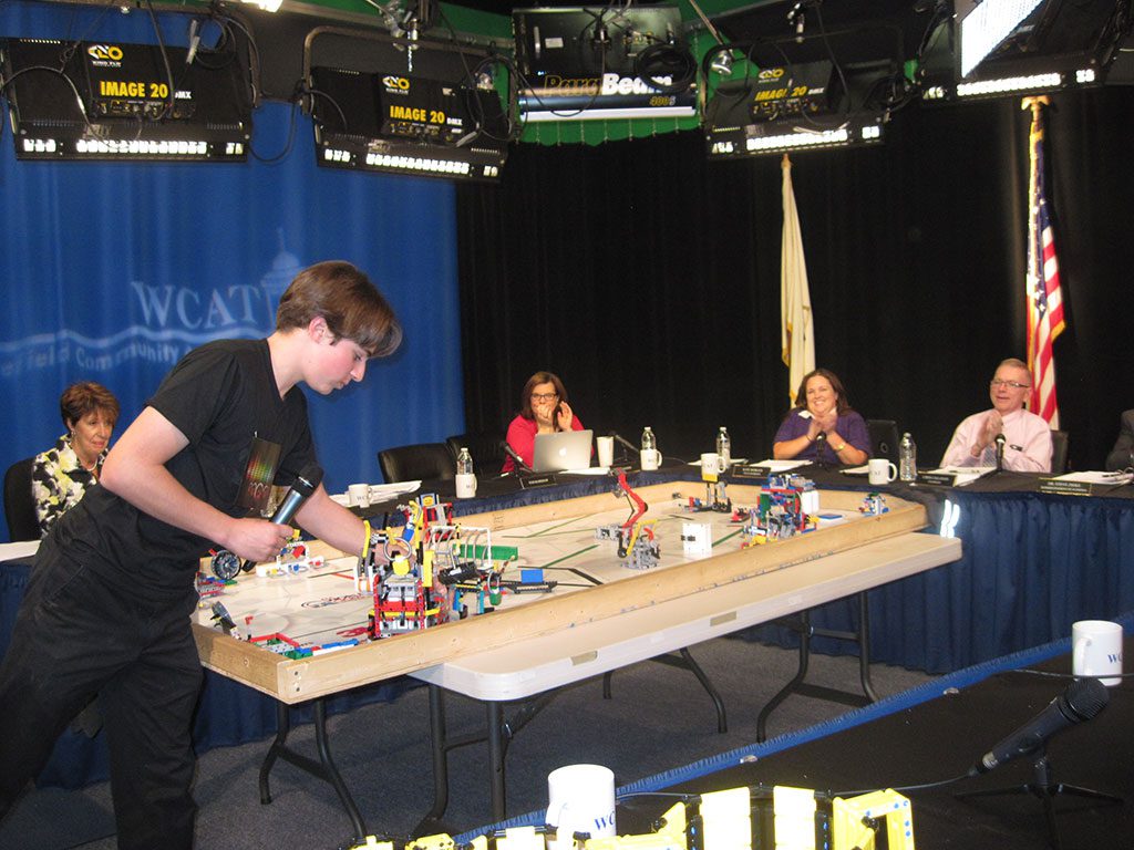 WAKEFIELD — An intensely difficult robotics puzzle designed by Wakefield students who are also members of the “We Are Robot” team took the spotlight at last night’s school board meeting when they demonstrated how the tricky puzzle could be solved within two-and-a-half minutes.