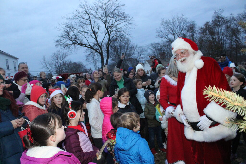 SANTA greets the children who gathered around him in anticipation of the Holiday Tree Lighting to commence.