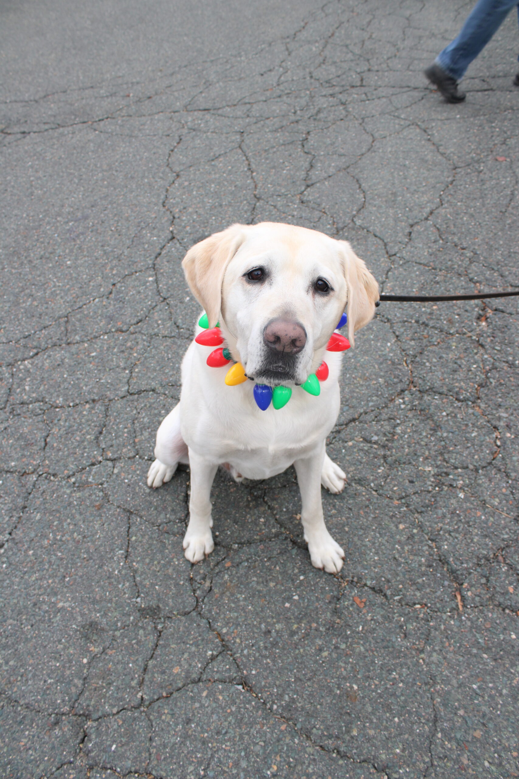 LOGAN gets into the spirit of the season wearing a colorful collar of holiday lights.