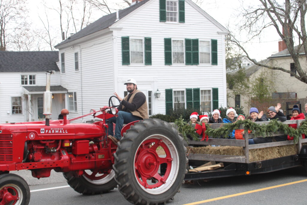 THE HAYRIDES, towed by a McCormick Farmall tractor from the grounds of the Rev. Daniel Putnam House and around Bow Street were very popular throughout the Holiday Tree Lighting festivities.