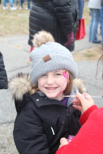 CHEEKY! Harper Gionest, 7, is thrilled to get a jewel-studded rainbow at the face-painting station.