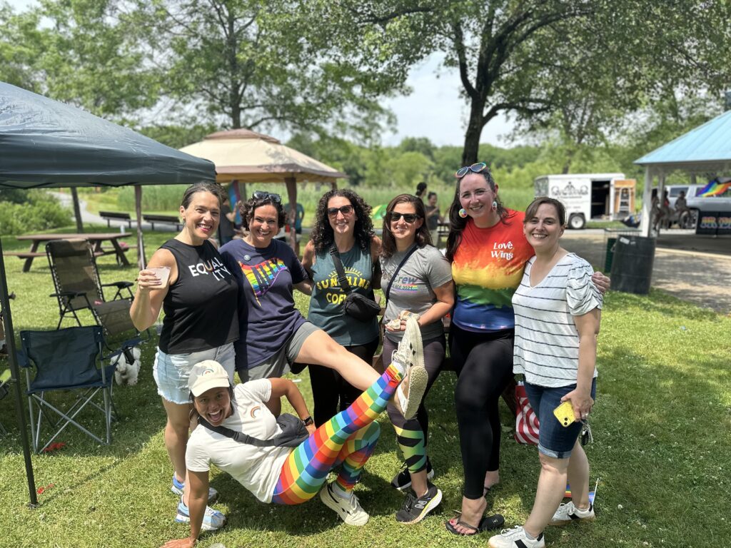 LOVE WINS! Celebrating allyship, friendship and love at the Pride Parade festivities are (from left) Beth McCaul, Francine Coughlin, Marissa, Alison Rosabianca, Katie Gabriello, Lisa Moran and (front row) Melissa Fritz. (Courtesy Photo)