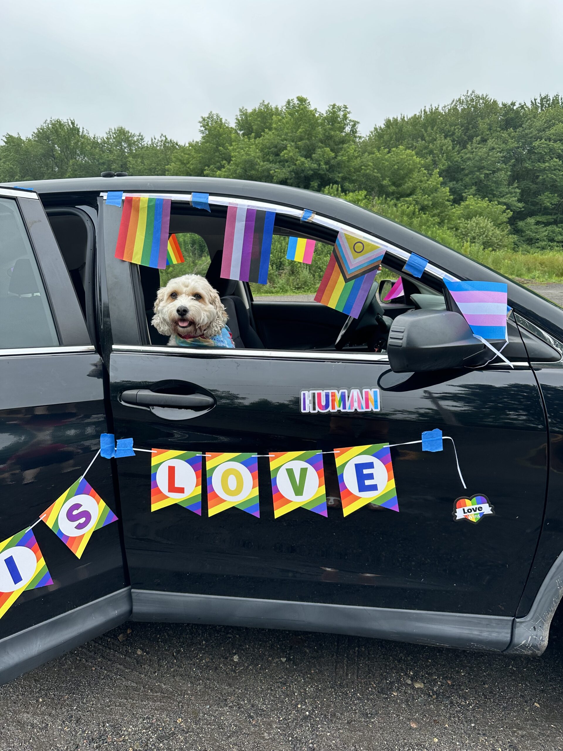 LET’S GO FOR RIDE! This proud pooch patiently waits for its human to ride in the 4th annual Pride Ride June 23. (Courtesy Photo)
