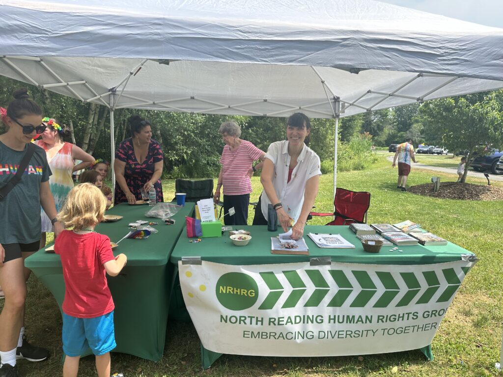 THE NORTH READING Human Rights Group, whose motto is: “Embracing Diversity Together,” provided an informational table at the 4th Annual Pride Ride. Among the members on-hand to greet guests was Melissa Audier. (Courtesy Photo)