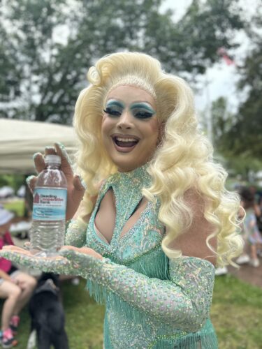 DRAG performer Zest staying cool on a hot afternoon at the post Pride Parade party at IRP. (Courtesy Photo)