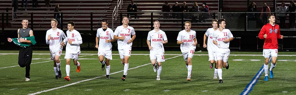 Whatever works, works – the team plays with a lot of soccer in them. And that passion for the game showed on Thursday, Oct. 27 when they beat Stoneham, 6-1, in a victory that punched their ticked into the Div. 3 North tournament. While Melrose has been a defensive-minded team this season, they’re offense is peaking as the regular season winds down.