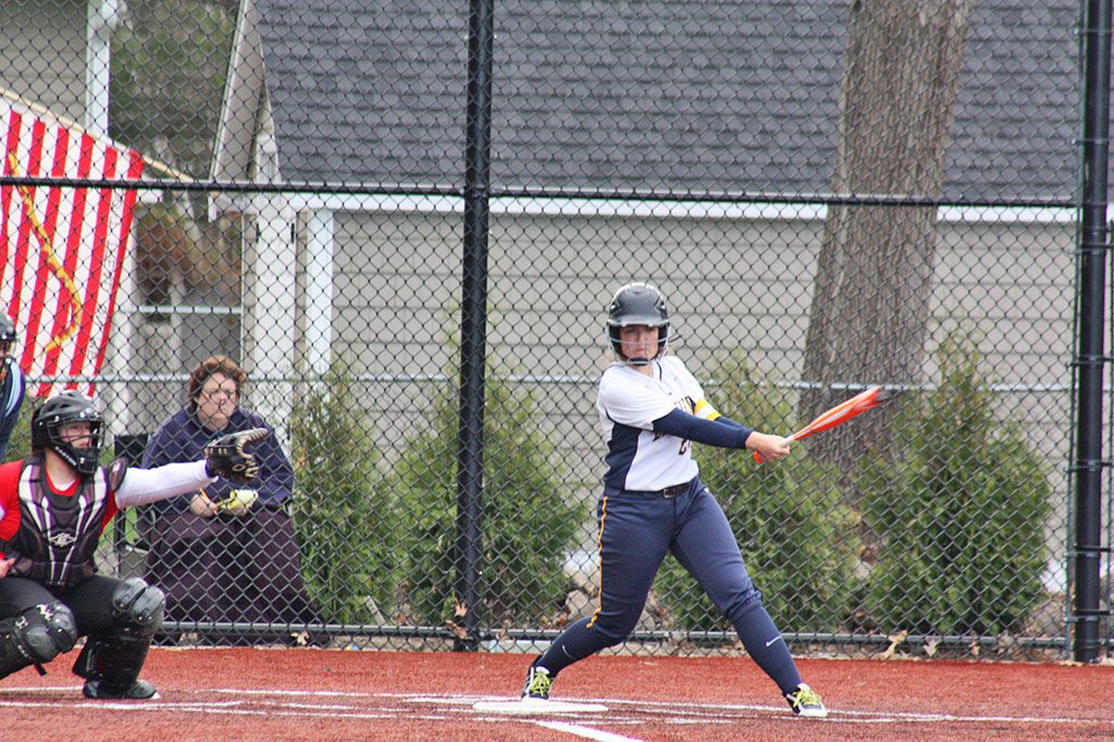 Freshman Rachel Badger opened the inning with a base hit, beating out the throw to first with her speed. The next batter popped out on a bunt and senior captain Hannah Travers drew a walk in a long at-bat to put runners on first and second.