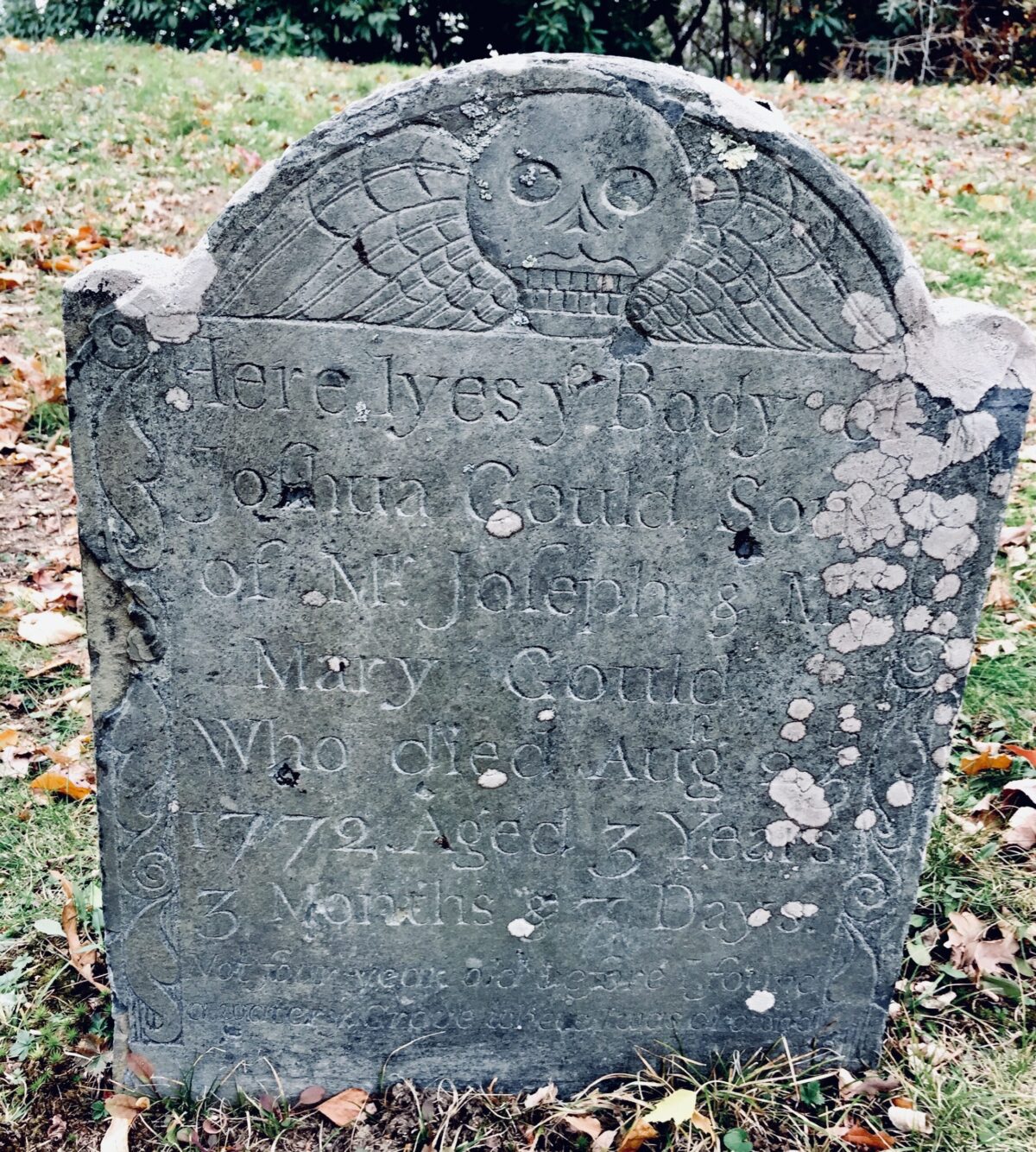 It is the gravestone of little Joshua Gould, son of Mary and Joseph Gould, dated to 1772, and is quite poignant: