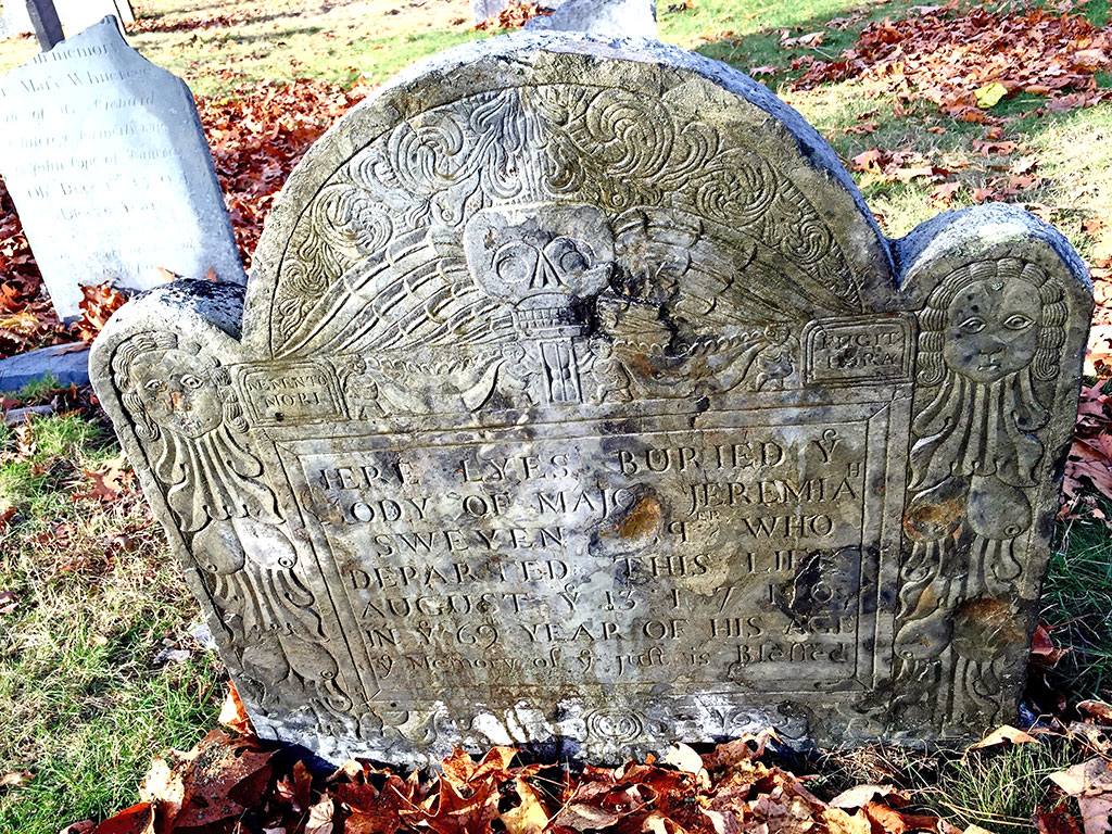 JEREMIAH SWAIN’S gravestone is high on the brow of the hill toward the fence near the parking lot of the First Parish Church.