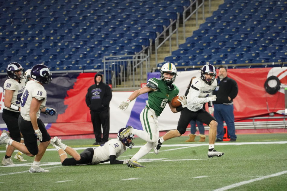 Two hours earlier and 46 miles to the south at Gillette Stadium, North Reading was putting the finishing touches on a decisive 44-28 defeat over the previously unbeaten Shawsheen Tech Rams. It marked the first championship in North Reading football history and erased the agony of last year’s defeat on the big stage.