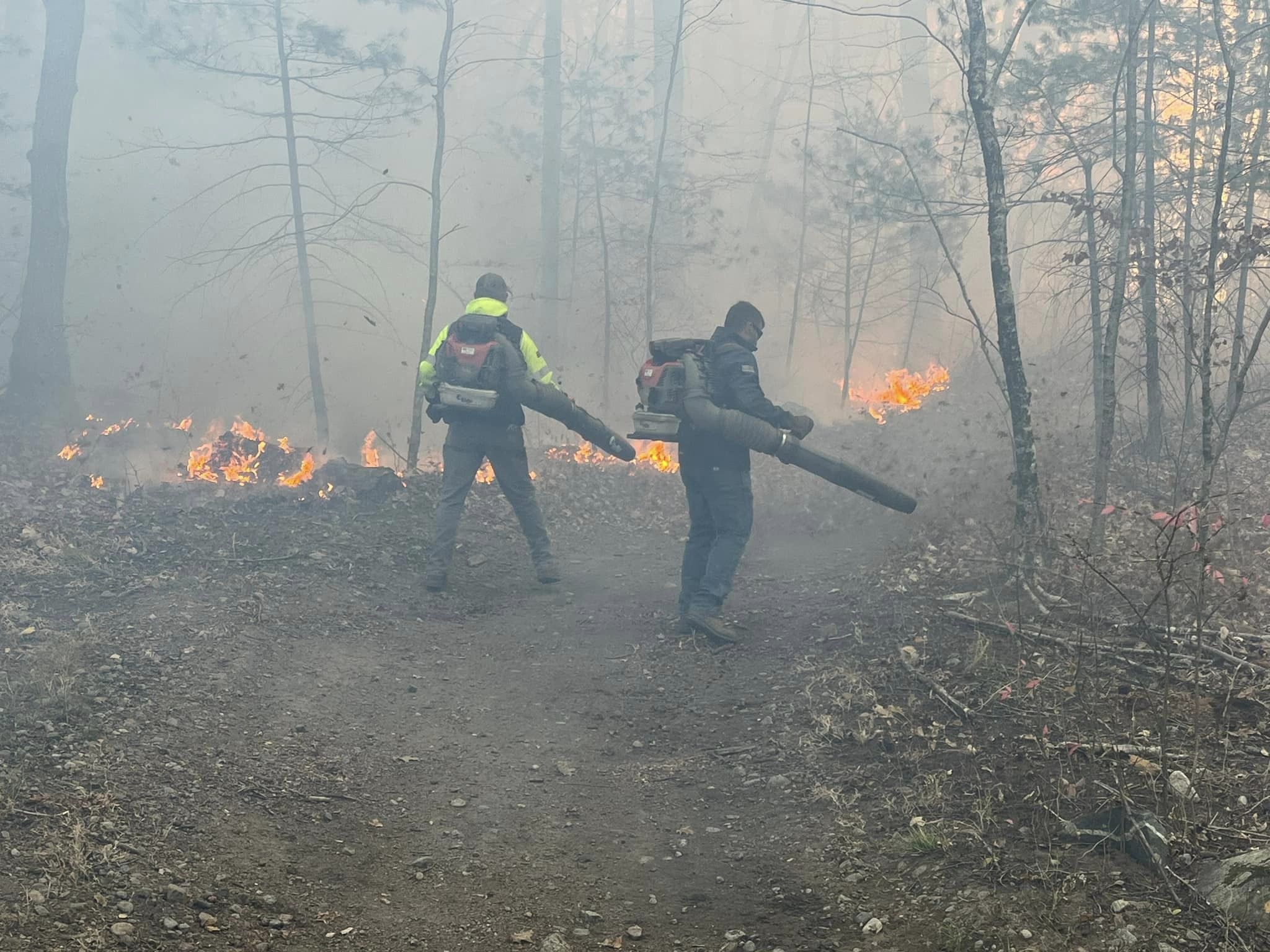 Sporting their industrial back pack leaf blowers, they, too, answered the call to help out the firefighters.