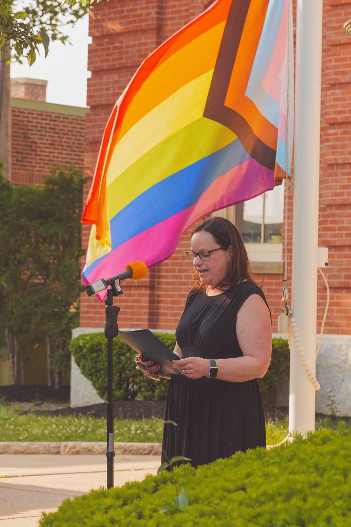 A COUPLE OF WEEKS AGO, the city marked the beginning of Pride Month with a flag raising at City Hall. Mayor Jen Grigoraitis made a few remarks at the ceremony, which included people of all ages. This past Monday, the City Council passed a resolution — sponsored by President Leila Migliorelli and Ward 1’s Manjula Karamcheti — that commits the city to “remain vigilant in deterring oppression and discrimination against people on the basis of sex, gender identity or expression, or sexual orientation.” (Photos by Conor Olmstead at cophotos.net)