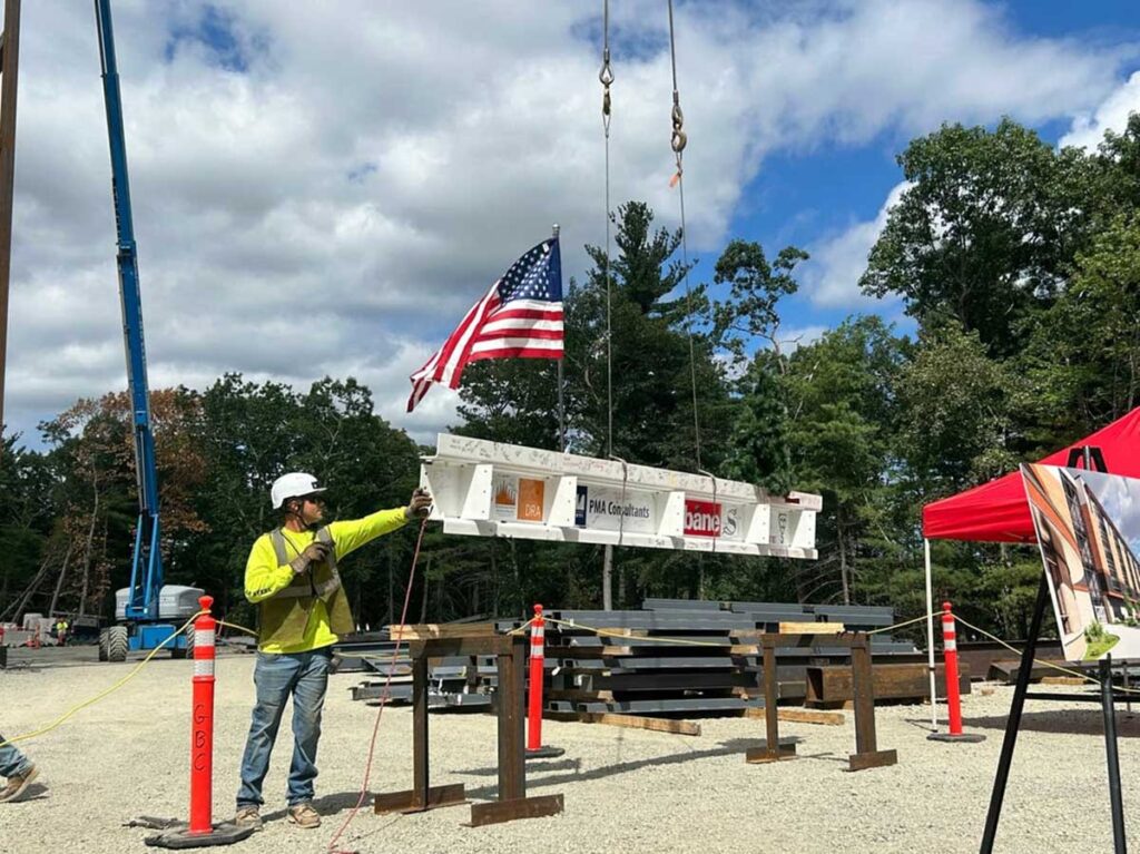Raising the final beam, traditionally known as “topping off” the building, marks the project’s second major milestone since the groundbreaking ceremony that signified the beginning of construction in October 2022.