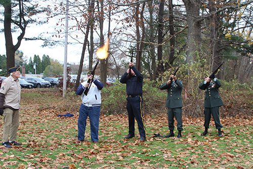 After Kimball concluded his speech, American Legion Post 131 members Allen Lieb, Tom Bogart, Paul Donato and Jack Lukas, under the guidance of Dick Weeks, fired three blank shots in the air. Lynnfield High School senior Patrick Walsh and junior Julia Colucci also performed “Taps “ and Rev. Ritt gave the closing prayer.