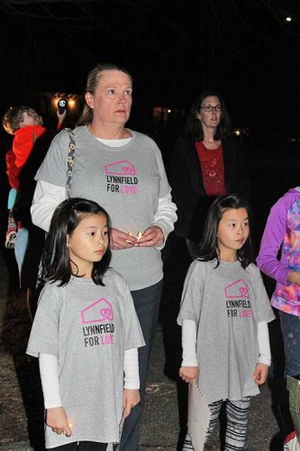 After the vigil’s mourners said a few words about the victims, Chris Barrett spoke on behalf of the Board of Selectmen. He thanked Lynnfield for Love for hosting the vigil and honoring the “17 souls who are truly angels among us.”