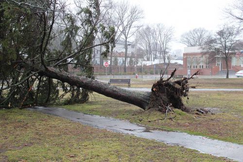 The town saw 1.9 inches of rain fall and about two dozen trees topple, half of which were town-owned. Numerous tree limbs came down and street signs blew over in winds that were sustained at 42 miles an hour for the better part of two days.