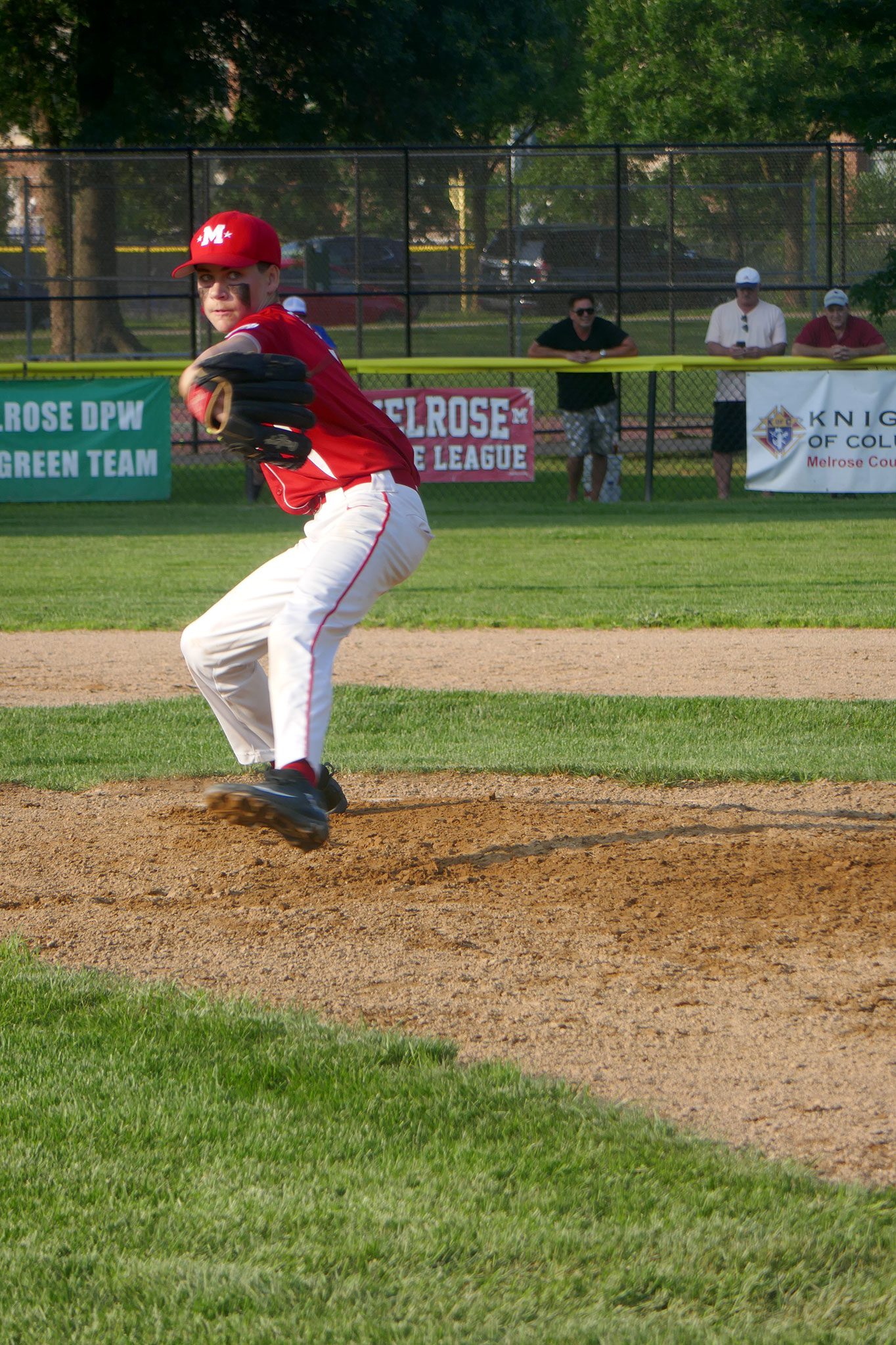 This was the final game of District pool play. Melrose and Everett had not played each other yet but both teams were 2-0 and qualified for the District Championship on July 15. Nicholas Picariello started on the bump for Melrose. Everett showed a little life and got two quick runs on three singles in the away half of the 1st.
