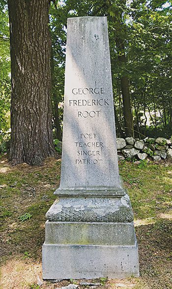 George Frederick Root, an American composer who found fame during the Civil War, spent his childhood here on his family’s farm. He was a member of the UCC and wrote the tune for the well-known Christian hymn, “Jesus Loves the Little Children,” which was originally put to wartime lyrics (“Tramp, Tramp, Tramp, the Boys are Marching”). A bronze plaque with his name and the quote: “He loved God and man and was beloved by both,” can be found within the UCC sanctuary, appropriately located by the choir, and a monument to commemorate his life achievements can be found in his family plot in North Reading’s own Harmony Vale Cemetery.