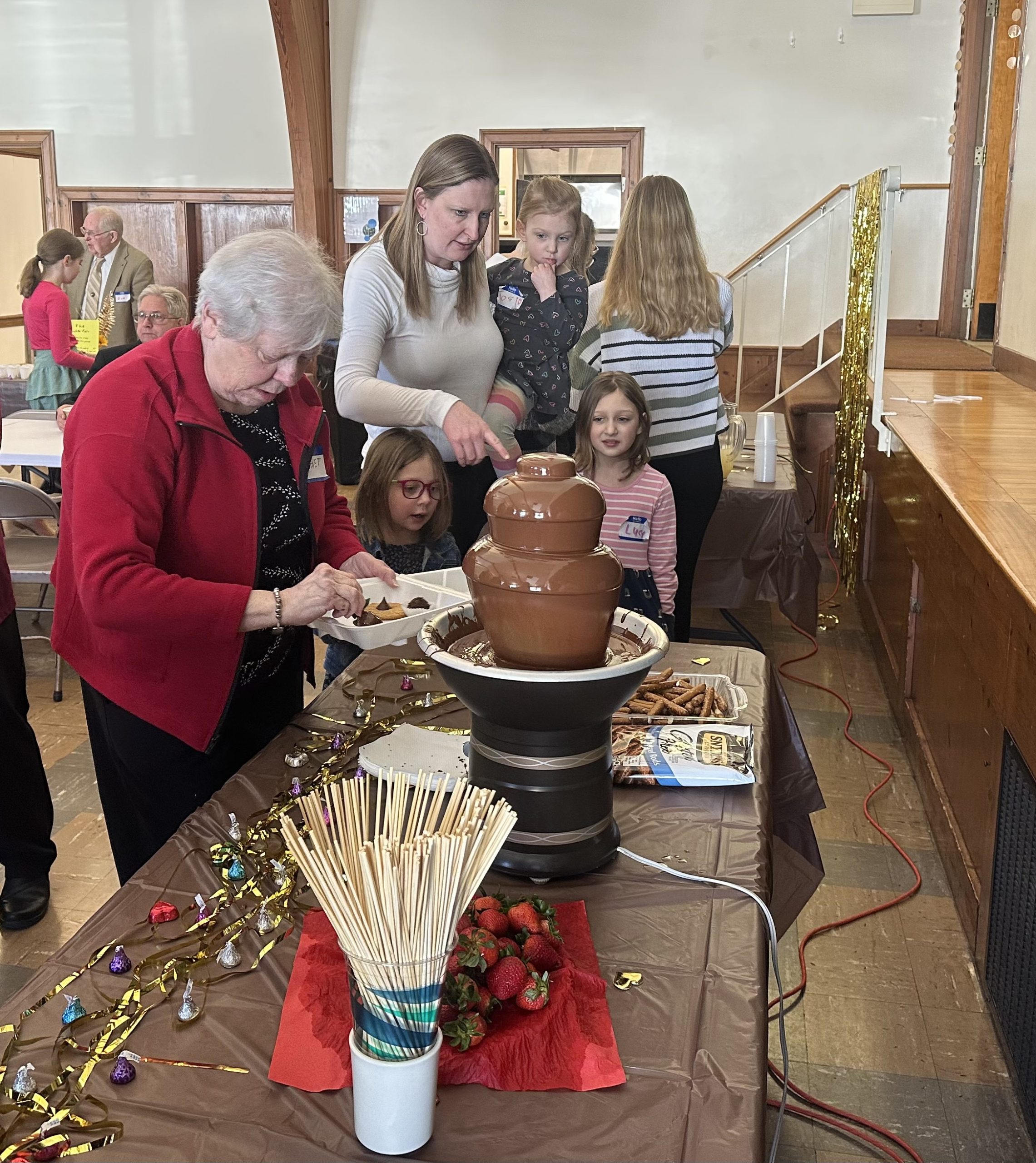 There was an impressive array of chocolate-themed dishes and the church hall was filled with the rich aroma of chocolate as attendees sampled each other’s creations. Among the dishes were Rev. Hughes’ famous Blissful Banana Pie, a chocolate fountain, Brazilian brigadeiros, cupcakes, chocolate chip cookies, truffles, fudge and lots more!