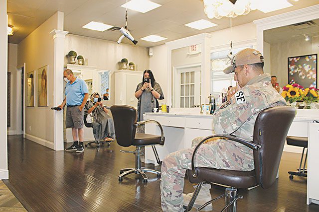 Enter U.S. Air Force Senior Airman Anthony Arroyo who wanted to make his homecoming special for his wife, Taylor. She works as a hair stylist at Salon 77 on Main Street. After having his homecoming delayed several times over the past few months during the coronavirus pandemic, Anthony reached out to his wife’s friends and salon owner Leah McCann. He knew that Leah and her close-knit staff would be up for the challenge of helping to plan a fun homecoming while keeping this secret from Taylor.