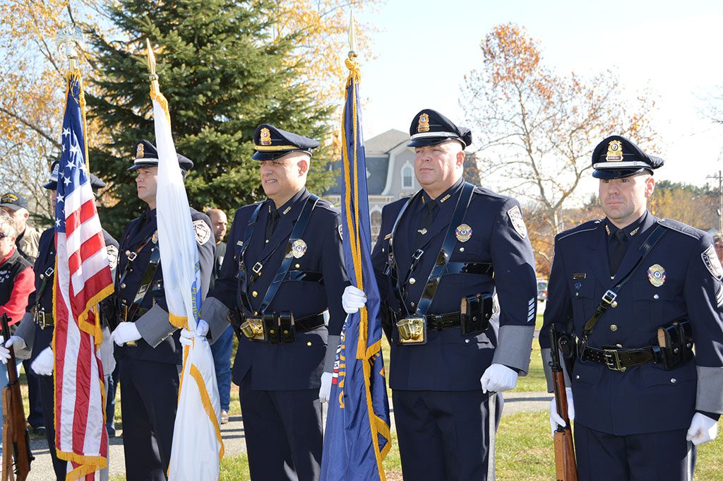 THE NORTH READING POLICE COLOR GUARD proudly shows the colors during Veterans Day on North Reading common. (Bob Turosz Photo)