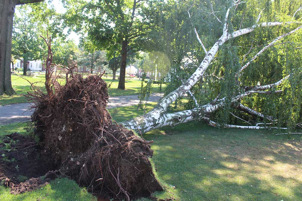 Not many sections of town were spared from Sunday afternoon’s wild weather that downed trees, knocked out power for thousands of Municipal Gas and Light Department customers, caused at least one fire and damaged many a property. The storm’s destructive path was wide, and picking up in its wake will take awhile.