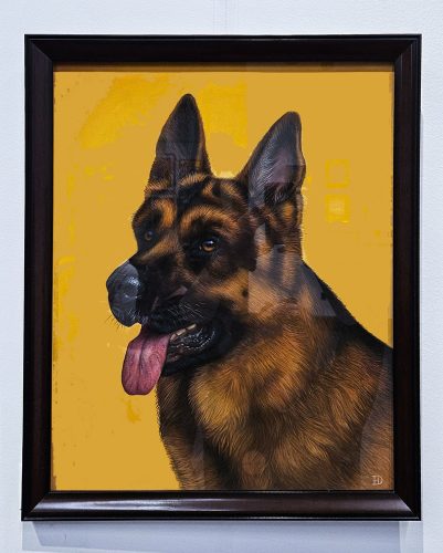 Stephen Norton secured second place with his color photograph Autumn Reflections. This semi-abstract image captures the stunning hues and forms of autumn mirrored in a puddle of water. Heather DiGiovanni earned third place for her pastel painting Progresso della Passione. This remarkable depiction of a German shepherd is impressively lifelike.