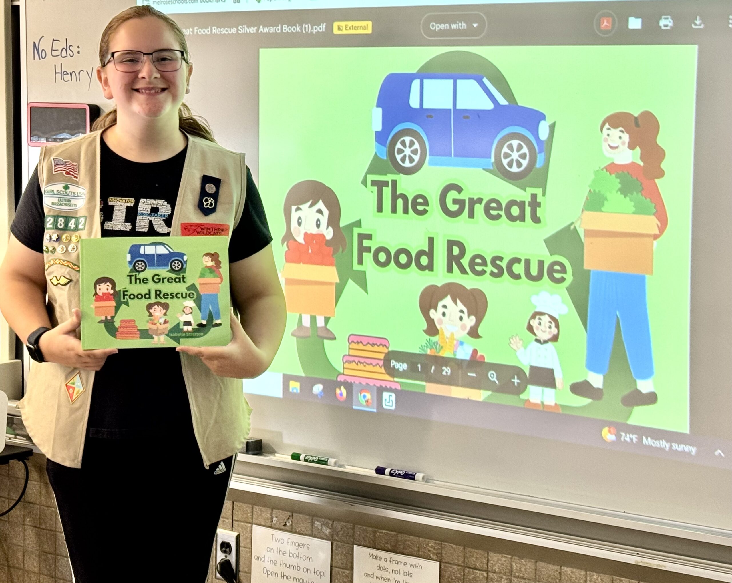 She was able to share her book in classrooms in both Wakefield and Melrose. She even returned to her Dolbeare Kindergarten classroom with Ms. Gallant to be a guest reader of her book. The book will also be on the shelves of The Wakefield Beebe Library soon. Izzy was inspired to do this project from her own food rescue volunteering with The Food Drive, a non-profit Food Rescue based in Melrose. For more information about food rescue in our community check out thefooddrive.org and for more information about Girl Scouting at gsema.org.