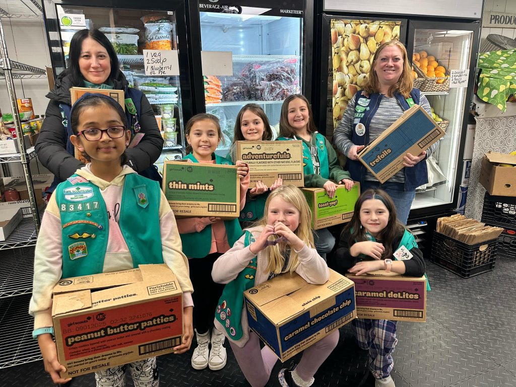 WAKEFIELD — Members of Wakefield Junior Troop 83417 dropped off 80 boxes of Girl Scout cookies to the Wakefield Food Pantry along with a monetary donation from their cookie proceeds.