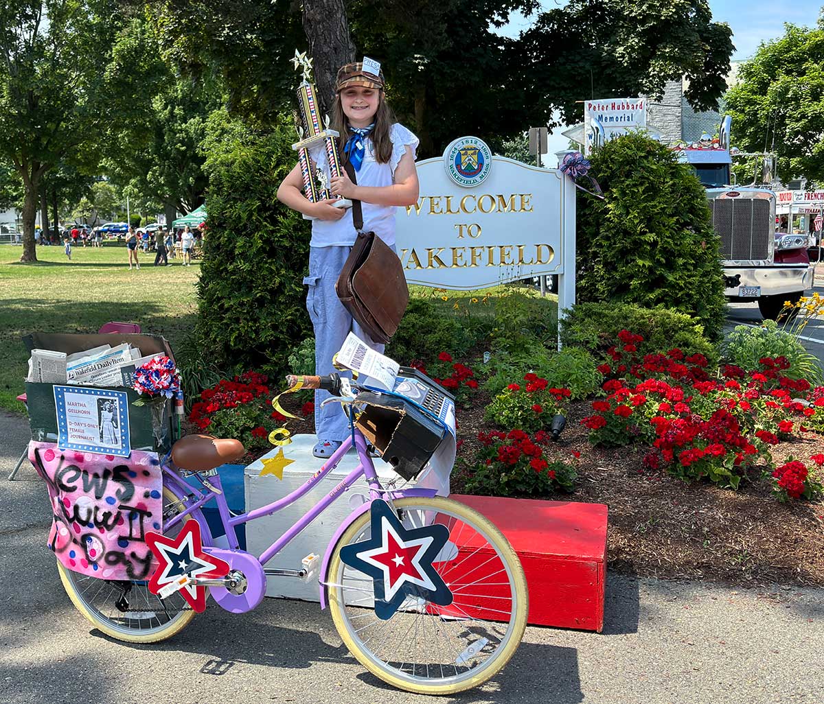 Best Decorated: First place, Penelope Mahoney, Wakefield, age 7, D-Day; second place, Ethel Quilty, Wakefield, age 1 1/2, Red, White and Blue; third place, Adeline Merrigan, Melrose, age 4, D-Day Boat.