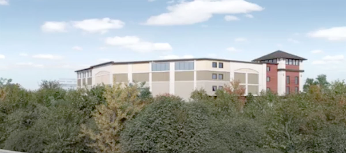 He also showed renderings of the proposed building, which he said would have solar panels on the roof.