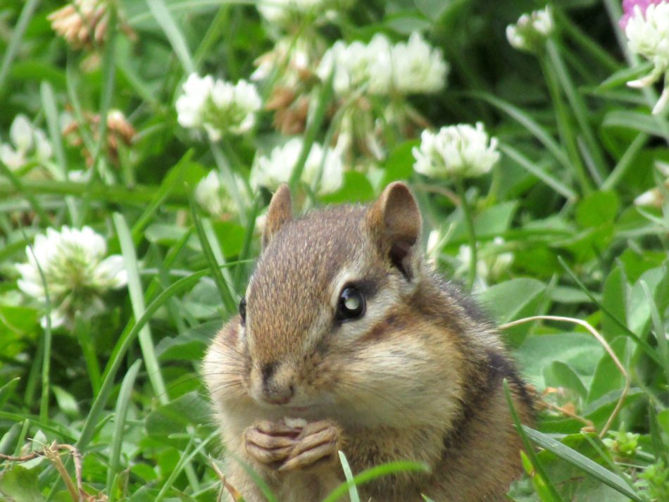 PHOTO: Outdoor dining June 21, 2022 A CHIPMUNK finds something tasty to eat among the clover. (Mark Sardella Photo)