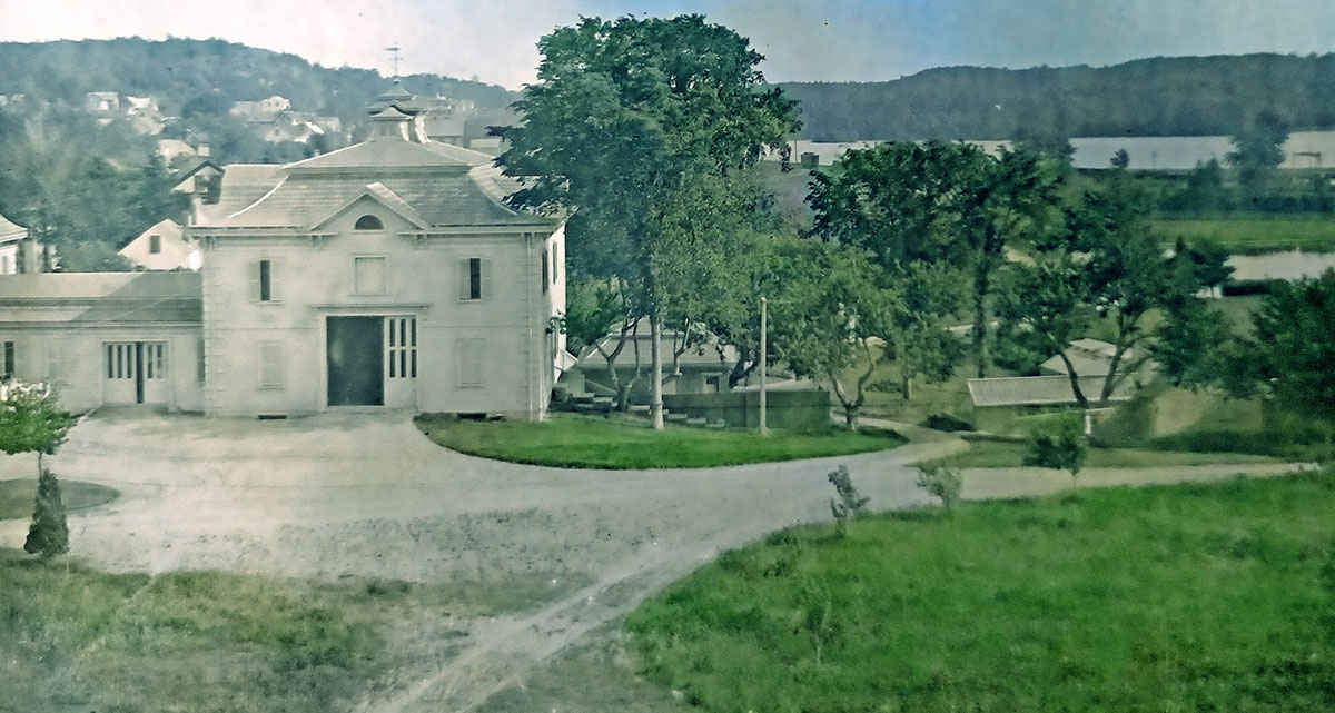 This colorized photo is of the view looking south from Cyrus Wakefield’s mansion in the summer of 1886, 13 years after the death of Mr. Wakefield. The Wakefield mansion sat on his estate, located approximately on the current site of the Galvin Middle School.