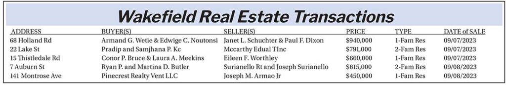 Real Estate Transactions, September 25, 2023