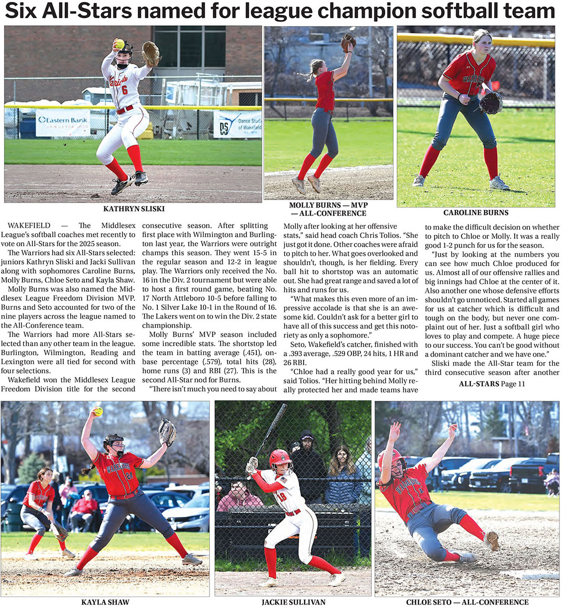 The Warriors had six All-Stars selected: juniors Kathryn Sliski and Jacki Sullivan along with sophomores Caroline Burns, Molly Burns, Chloe Seto and Kayla Shaw.