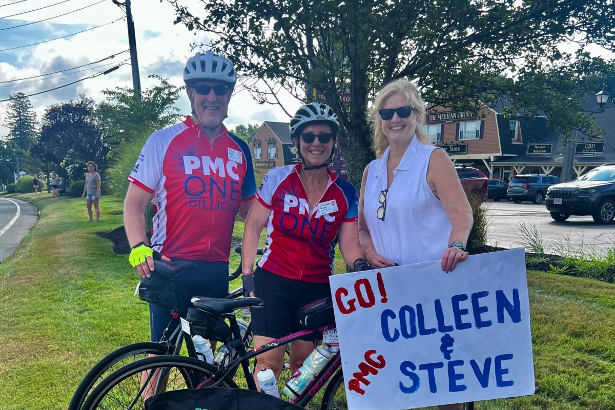 In past years, the duo has ridden in the PMC. Their close friend, Lisa Morrissey and her husband Bob, started the team Pedals for Pediatrics (P4P) in 2004, with a mission to ease the burden of childhood cancer with every mile ridden and every dollar raised. 20 years later, P4P has raised almost $7 million to support pediatric cancer research, program support, and direct financial assistance for patients and families receiving care at Dana-Farber/ Boston Children’s Cancer and Blood Disorders Center. Through an innovative grant process P4P has provided funding for over 75 initiatives and programs in the Jimmy Fund Clinic. Boston Children’s has supported over 50 pediatric oncologists/ scientists in pediatric cancer research, and helped countless families bear the financial burden of cancer by defraying out-of-pocket expenses such as food, transportation and housing while a child is undergoing treatment. Colleen noted that she and Steve talked about riding for a long time, but the fundraising intimidated them, so in 2021, as Colleen was approaching her 60th birthday, they decided to ride. On August 8th 2021, they completed the 1-day PMC Century Ride. Through social media and emails to friends and family, they were able to easily make their fundraising minimum. She said the ride was tough as they had never ridden 100 miles, but they got hooked. In 2022, they did the 2-day Wellesley-Ptown ride, but stayed with friends so they did not ride over the Bourne Bridge. Then in 2023, they rode again from Wellesley to Ptown and stayed at Mass Maritime and were able to see the sun come up over the Bourne Bridge. In 2024, they rode from Sturbridge to Ptown, to which Colleen calls “one of the hardest things we had ever done.”