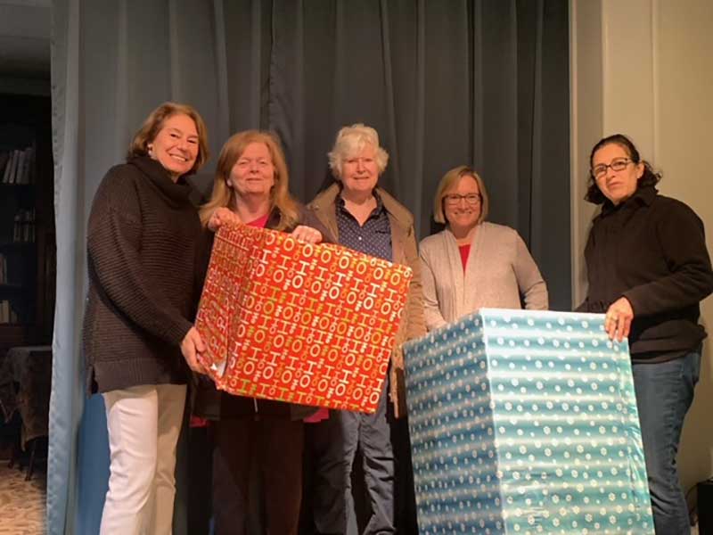 WAKEFIELD SALVATION ARMY and Unitarian Universalist Church come together with gifts for Wakefield children who need a little help for a warm and brighter holiday. (L-R) Janine Fabiano, Bev Elcewicz, Sheila Moran, Lucy Skeldon and Laura Broding.