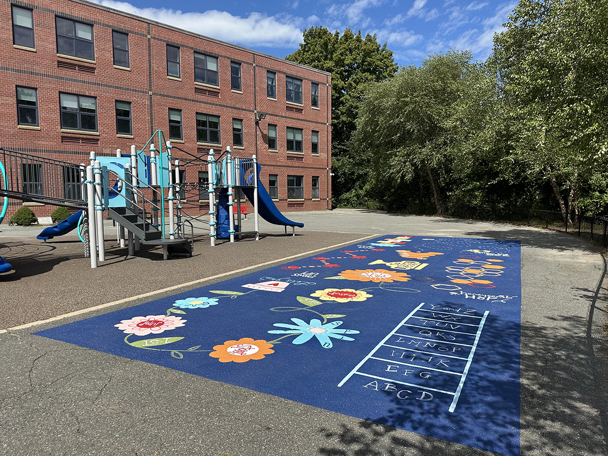 WAKEFIELD — Woodville Elementary School students began the school year with a fun and creative addition to their playground. Thanks to the hard work and artistic talent of Woodville community members, children can run, jump and interact with a colorful new Chalk Walk/Obstacle Course painted directly onto the playground’s pavement. Think of it as an illustrated game board with features that keep kids moving and delighted by distinctly Wakefield imagery.