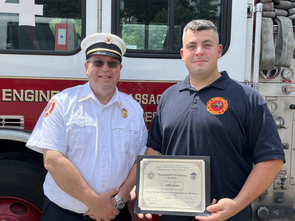 Chief Sullivan had strong praise for the MFA Recruit Training Program, stating that the training “was something that we simply can’t duplicate and provide at the local level”. Sullivan additionally stated. “We welcome Firefighter Carano back from the Fire Academy and wish him a long and productive career in the fire service serving the citizens of Wakefield.”