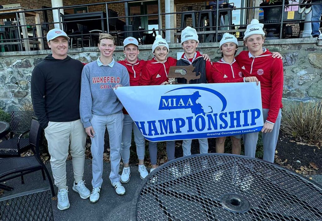 THE WAKEFIELD HIGH golf team won the 2024 Div. 2 North Sectional State Championship on Wednesday at Brookline Golf Course. It’s the first golf state title in school history. The Warriors will move on to the D2 State Finals on Monday at Berkshire Hills CC in Pittsfield. (Courtesy Photo)