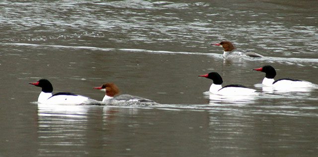 COMMON MERGANSERS, a variety of diving ducks, swim in Hartshorne Cove. (Mark Sardella Photo)