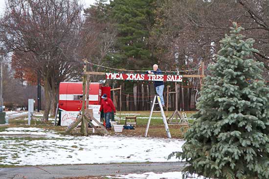 OVER THE WEEKEND the YMCA was gearing up for the delivery of Christmas trees. The trailer has been a holiday landmark on North Avenue for years. (Donna Larsson Photo)