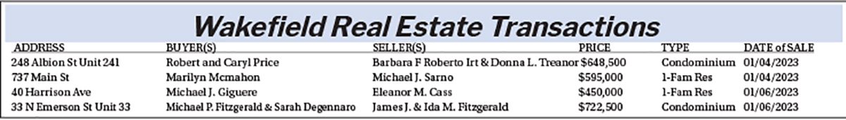 Wakefield Real Estate Transaction January 23, 2023