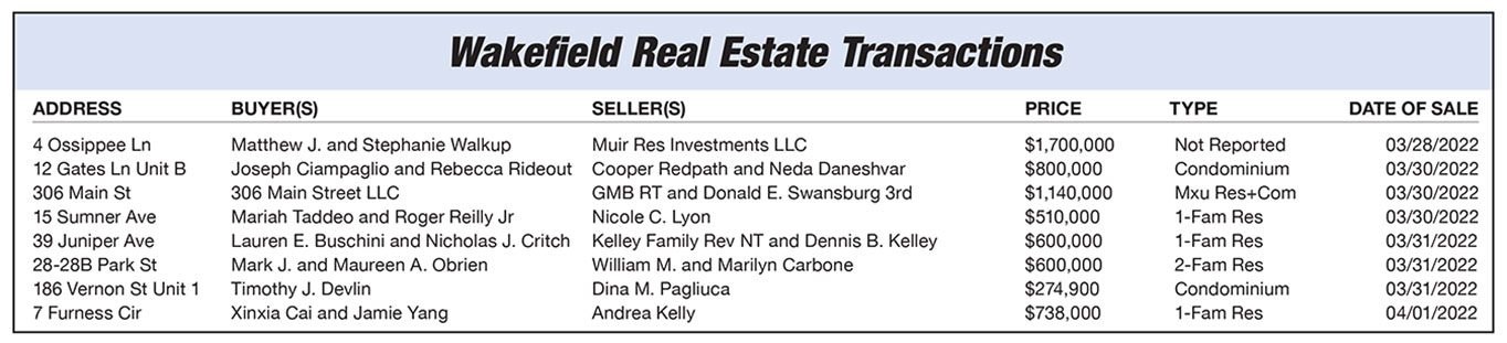 Wakefield Real Estate Transactions published April 18, 2022