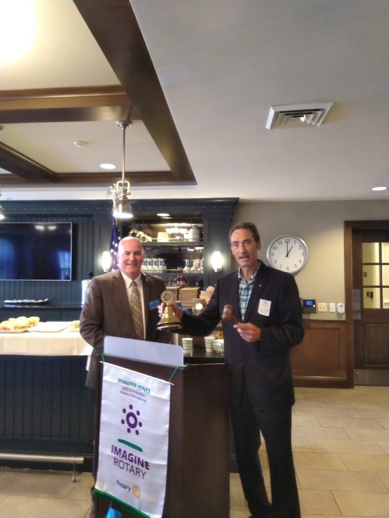 Outgoing President Bruce Donovan swore Mullen in and handed him the Rotary bell, which symbolizes order and discipline, and gavel, which symbolizes the authority invested in the Rotarian elected to the highest position and through him reminds those present of his authority.