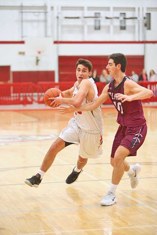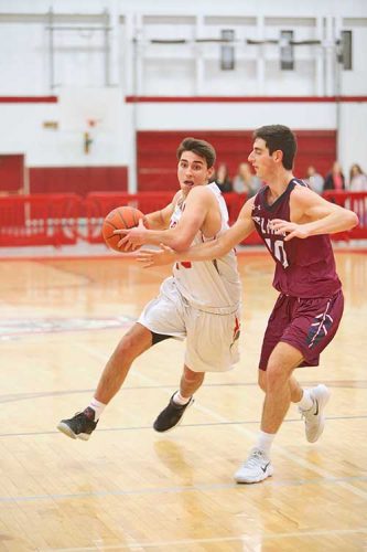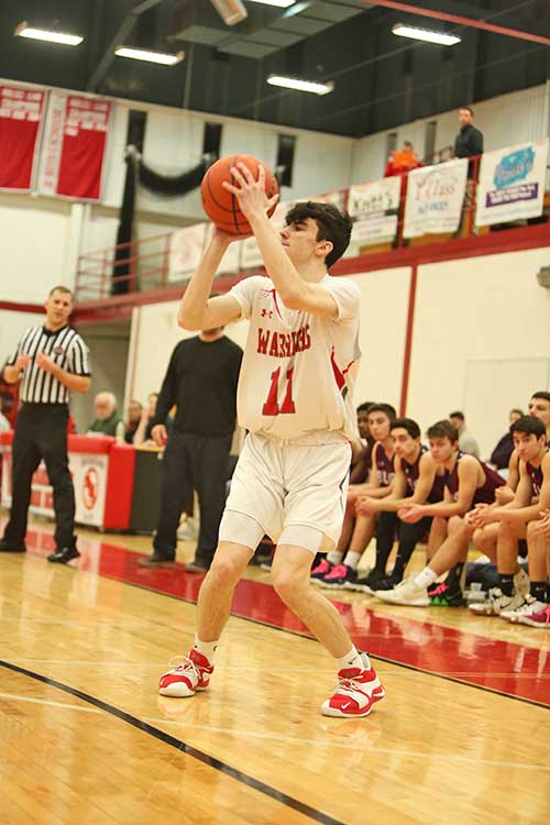 AIDAN CUSACK stepped up for the Warriors against Belmont with a team-high 17 points. Nobody gave Wakefield much of a chance against the Marauders who were 10-0 in league play, but the captain scored 10 points in the second half to help the Warriors hang with the visitors down to the last shot. (Donna Larsson Photo)