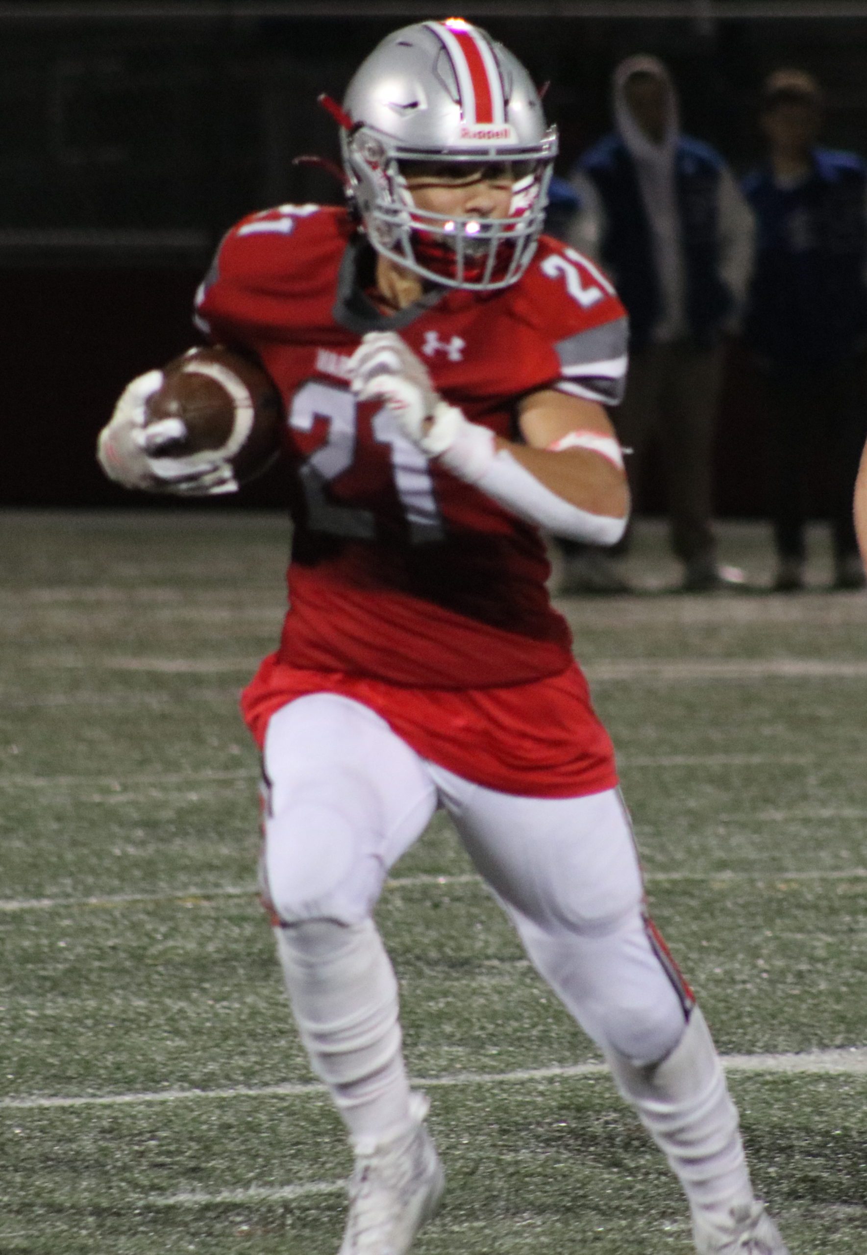 NATHAN DELGADO rushed for 148 yards and 2 TD’s in Wakefield’s 35-0 win over Burlington on Friday night. Delgado and the Warriors will meet a strong Woburn team on the road this Friday night at 7 p.m. (File Photo)