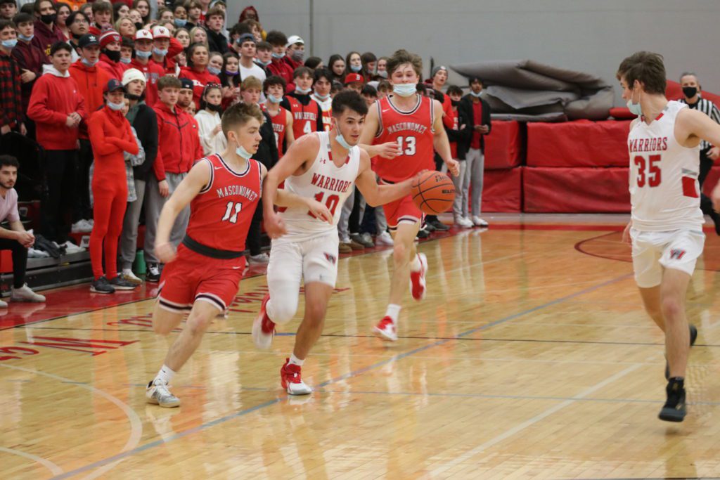 That moment never arrived for the 28th seeded Wakefield High boys’ basketball team in a preliminary round game on their home court against No. 37 Masconomet last night. With a 56-46 victory, the Warriors advanced to a first round matchup against No. 5 Pope Francis Prep, Friday night, 5 p.m. in Springfield.
