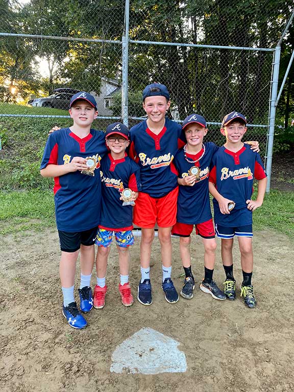 The younger age group’s tournament ended on a walk-off home run hit by James Maloney. Trophies were then given to Patrick Maloney, James Maloney, Colin Campbell, Rory Campbell and Jack Reboulet, all members of the Braves little league team who played with their team jerseys on. Marty Nugai was on the opposing team in the championship and hit a couple of home runs in the tournament himself. His teammates were Rhys Dhingra, Daniel Curran, Tighe Salsman and Chase Kaufman.