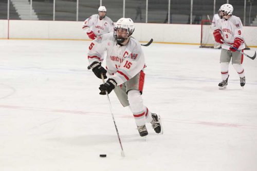 “It was something we saw in the game against Arlington,” said the coach. “There were a couple of times Mike ended up on a line with Tommy (Harrington) and Oliver (Miller) and we liked what we saw. We decided to try that combination tonight and moving Cal Tryder back helped jump start our second line. We were getting good pressure from both lines.”